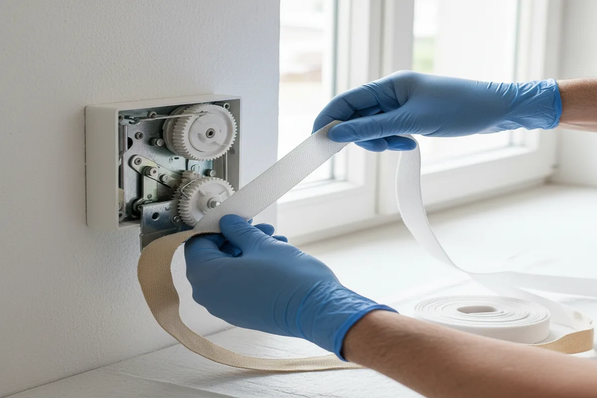 Retiramos la cinta antigua, instalamos la nueva cinta reforzada y regulamos el recogedor. El trabajo completo se hace en 20-30 minutos. Tu persiana vuelve a funcionar perfectamente.